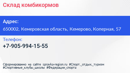 Склад комбикормов по адресу 650002, Кемеровская область, Кемерово, Коперная, 57 в дальнейшем Организация, размещена в следующих категориях: