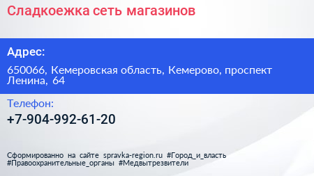 Сладкоежка, сеть магазинов по адресу 650066, Кемеровская область, Кемерово, проспект Ленина, 64 в дальнейшем Организация, размещена в следующих категориях: