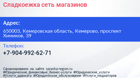 Сладкоежка, сеть магазинов по адресу 650003, Кемеровская область, Кемерово, проспект Химиков, 39 в дальнейшем Организация, размещена в следующих категориях:
