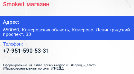 Smokeit, магазин по адресу 650060, Кемеровская область, Кемерово, Ленинградский проспект, 33 в дальнейшем Организация, размещена в следующих категориях:
