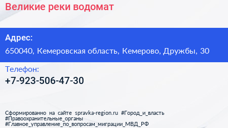 Великие реки, водомат по адресу 650040, Кемеровская область, Кемерово, Дружбы, 30 в дальнейшем Организация, размещена в следующих категориях:
