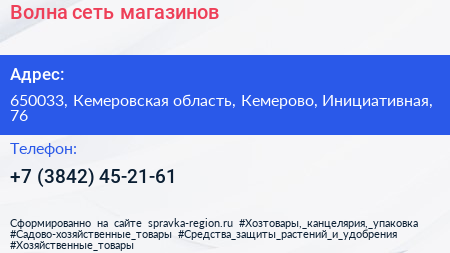 Волна, сеть магазинов по адресу 650033, Кемеровская область, Кемерово, Инициативная, 76 в дальнейшем Организация, размещена в следующих категориях: