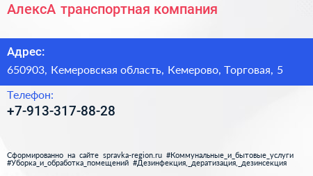 АлексА, транспортная компания по адресу 650903, Кемеровская область, Кемерово, Торговая, 5 в дальнейшем Организация, размещена в следующих категориях: