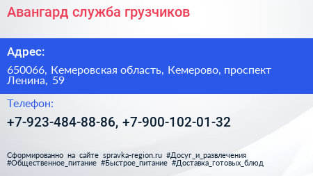 Авангард, служба грузчиков по адресу 650066, Кемеровская область, Кемерово, проспект Ленина, 59 в дальнейшем Организация, размещена в следующих категориях: