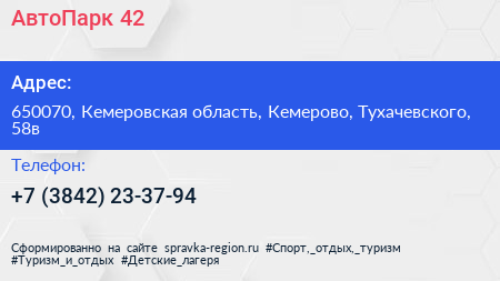 АвтоПарк 42 по адресу 650070, Кемеровская область, Кемерово, Тухачевского, 58в в дальнейшем Организация, размещена в следующих категориях: