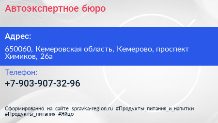 Автоэкспертное бюро по адресу 650060, Кемеровская область, Кемерово, проспект Химиков, 26а в дальнейшем Организация, размещена в следующих категориях: