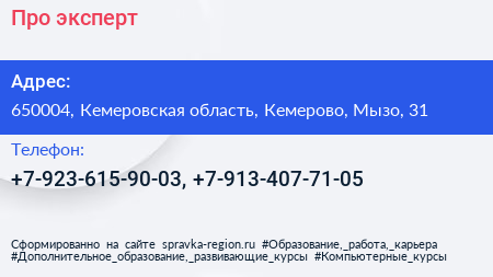 Про-эксперт по адресу 650004, Кемеровская область, Кемерово, Мызо, 31 в дальнейшем Организация, размещена в следующих категориях: