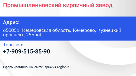 Промышленновский кирпичный завод по адресу 650051, Кемеровская область, Кемерово, Кузнецкий проспект, 256 к4 в дальнейшем Организация, размещена в следующих категориях: