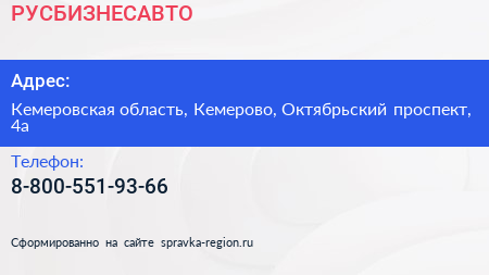 РУСБИЗНЕСАВТО по адресу Кемеровская область, Кемерово, Октябрьский проспект, 4а в дальнейшем Организация, размещена в следующих категориях: