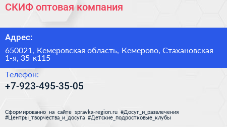 СКИФ, оптовая компания по адресу 650021, Кемеровская область, Кемерово, Стахановская 1-я, 35 к115 в дальнейшем Организация, размещена в следующих категориях: