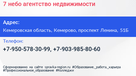 7 небо, агентство недвижимости по адресу Кемеровская область, Кемерово, проспект Ленина, 51Б в дальнейшем Организация, размещена в следующих категориях: