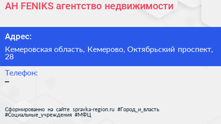 АН FENIKS, агентство недвижимости по адресу Кемеровская область, Кемерово, Октябрьский проспект, 28 в дальнейшем Организация, размещена в следующих категориях: