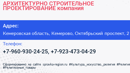 АРХИТЕКТУРНО СТРОИТЕЛЬНОЕ ПРОЕКТИРОВАНИЕ, компания по адресу Кемеровская область, Кемерово, Октябрьский проспект, 2 в дальнейшем Организация, размещена в следующих категориях: