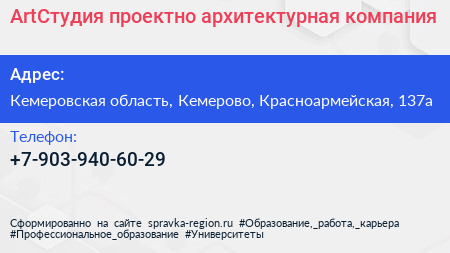 ArtСтудия, проектно-архитектурная компания по адресу Кемеровская область, Кемерово, Красноармейская, 137а в дальнейшем Организация, размещена в следующих категориях: