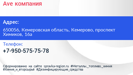 Ave, компания по адресу 650056, Кемеровская область, Кемерово, проспект Химиков, 16а в дальнейшем Организация, размещена в следующих категориях: