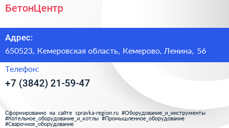 БетонЦентр по адресу 650523, Кемеровская область, Кемерово, Ленина, 56 в дальнейшем Организация, размещена в следующих категориях: