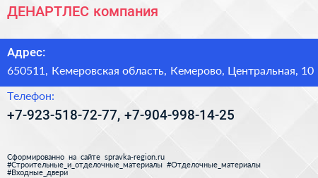 ДЕНАРТЛЕС, компания по адресу 650511, Кемеровская область, Кемерово, Центральная, 10 в дальнейшем Организация, размещена в следующих категориях: