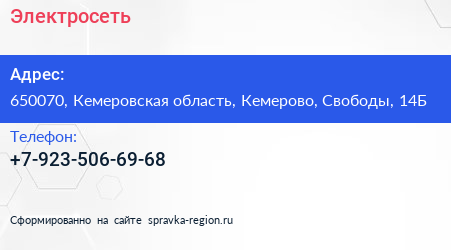 Электросеть по адресу 650070, Кемеровская область, Кемерово, Свободы, 14Б в дальнейшем Организация, размещена в следующих категориях: