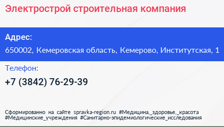 Электрострой, строительная компания по адресу 650002, Кемеровская область, Кемерово, Институтская, 1 в дальнейшем Организация, размещена в следующих категориях: