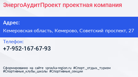 ЭнергоАудитПроект, проектная компания по адресу Кемеровская область, Кемерово, Советский проспект, 27 в дальнейшем Организация, размещена в следующих категориях: