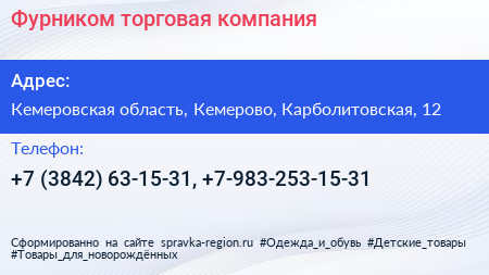 Фурником, торговая компания по адресу Кемеровская область, Кемерово, Карболитовская, 12 в дальнейшем Организация, размещена в следующих категориях: