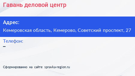 Гавань, деловой центр по адресу Кемеровская область, Кемерово, Советский проспект, 27 в дальнейшем Организация, размещена в следующих категориях: