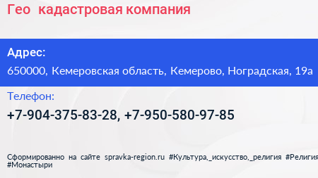 Гео+, кадастровая компания по адресу 650000, Кемеровская область, Кемерово, Ноградская, 19а в дальнейшем Организация, размещена в следующих категориях: