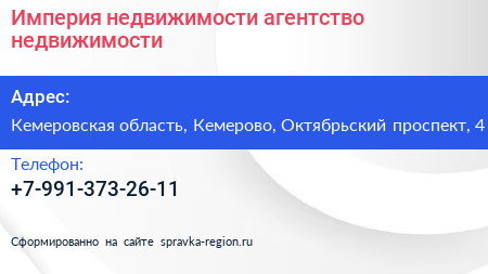 Империя недвижимости, агентство недвижимости по адресу Кемеровская область, Кемерово, Октябрьский проспект, 4 в дальнейшем Организация, размещена в следующих категориях: