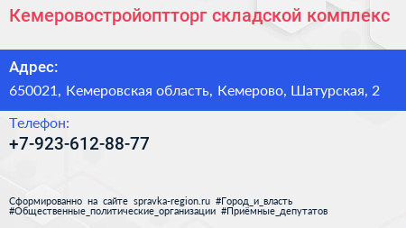 Кемеровостройоптторг, складской комплекс по адресу 650021, Кемеровская область, Кемерово, Шатурская, 2 в дальнейшем Организация, размещена в следующих категориях:
