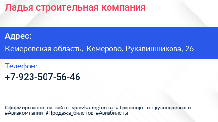 Ладья, строительная компания по адресу Кемеровская область, Кемерово, Рукавишникова, 26 в дальнейшем Организация, размещена в следующих категориях: