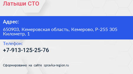 Латыши, СТО по адресу 650903, Кемеровская область, Кемерово, Р-255 305 Километр, 1 в дальнейшем Организация, размещена в следующих категориях:
