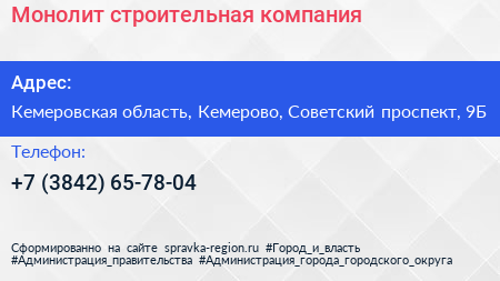 Монолит, строительная компания по адресу Кемеровская область, Кемерово, Советский проспект, 9Б в дальнейшем Организация, размещена в следующих категориях: