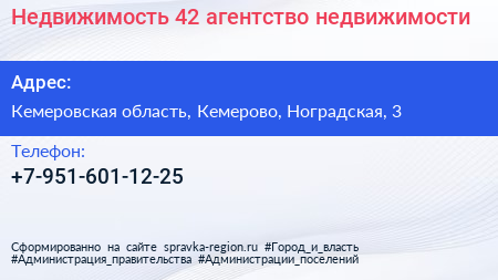 Недвижимость-42, агентство недвижимости по адресу Кемеровская область, Кемерово, Ноградская, 3 в дальнейшем Организация, размещена в следующих категориях: