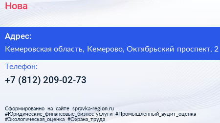 Нова по адресу Кемеровская область, Кемерово, Октябрьский проспект, 2 в дальнейшем Организация, размещена в следующих категориях: