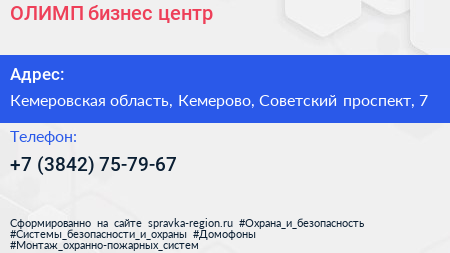 ОЛИМП, бизнес-центр по адресу Кемеровская область, Кемерово, Советский проспект, 7 в дальнейшем Организация, размещена в следующих категориях: