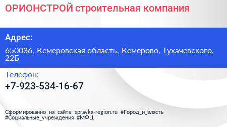 ОРИОНСТРОЙ, строительная компания по адресу 650036, Кемеровская область, Кемерово, Тухачевского, 22Б в дальнейшем Организация, размещена в следующих категориях: