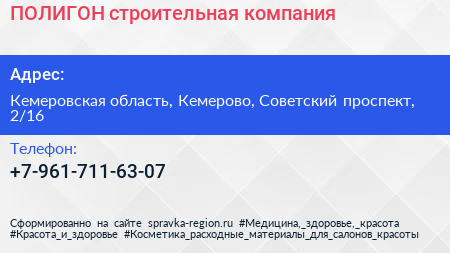 ПОЛИГОН, строительная компания по адресу Кемеровская область, Кемерово, Советский проспект, 2/16 в дальнейшем Организация, размещена в следующих категориях: