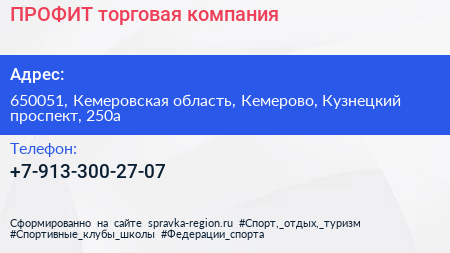 ПРОФИТ, торговая компания по адресу 650051, Кемеровская область, Кемерово, Кузнецкий проспект, 250а в дальнейшем Организация, размещена в следующих категориях: