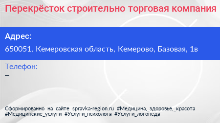 Перекрёсток, строительно-торговая компания по адресу 650051, Кемеровская область, Кемерово, Базовая, 1в в дальнейшем Организация, размещена в следующих категориях:
