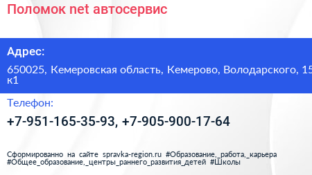 Поломок.net, автосервис по адресу 650025, Кемеровская область, Кемерово, Володарского, 15 к1 в дальнейшем Организация, размещена в следующих категориях: