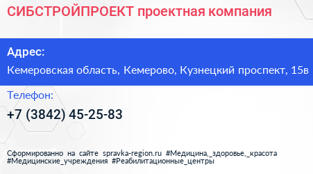 СИБСТРОЙПРОЕКТ, проектная компания по адресу Кемеровская область, Кемерово, Кузнецкий проспект, 15в в дальнейшем Организация, размещена в следующих категориях: