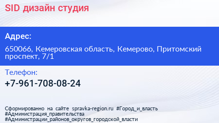 SID, дизайн-студия по адресу 650066, Кемеровская область, Кемерово, Притомский проспект, 7/1 в дальнейшем Организация, размещена в следующих категориях: