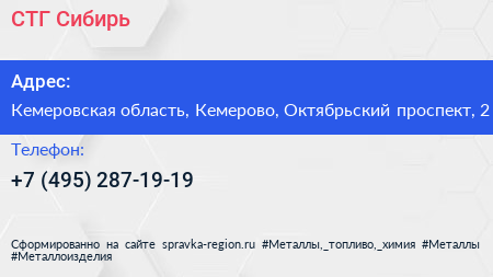 СТГ-Сибирь по адресу Кемеровская область, Кемерово, Октябрьский проспект, 2 в дальнейшем Организация, размещена в следующих категориях: