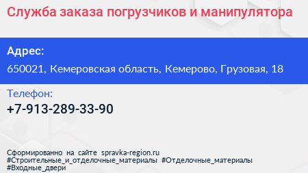 Служба заказа погрузчиков и манипулятора по адресу 650021, Кемеровская область, Кемерово, Грузовая, 18 в дальнейшем Организация, размещена в следующих категориях: