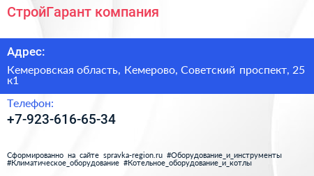 СтройГарант, компания по адресу Кемеровская область, Кемерово, Советский проспект, 25 к1 в дальнейшем Организация, размещена в следующих категориях: