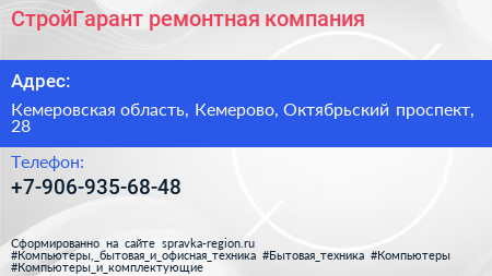 СтройГарант, ремонтная компания по адресу Кемеровская область, Кемерово, Октябрьский проспект, 28 в дальнейшем Организация, размещена в следующих категориях: