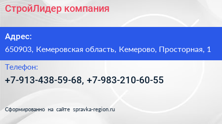 СтройЛидер, компания по адресу 650903, Кемеровская область, Кемерово, Просторная, 1 в дальнейшем Организация, размещена в следующих категориях: