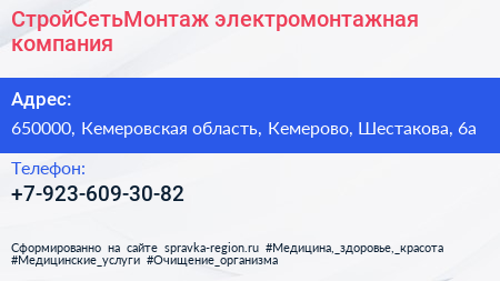 СтройСетьМонтаж, электромонтажная компания по адресу 650000, Кемеровская область, Кемерово, Шестакова, 6а в дальнейшем Организация, размещена в следующих категориях: