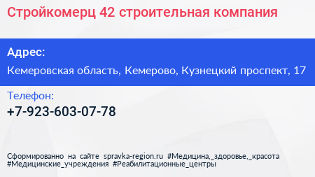 Стройкомерц 42, строительная компания по адресу Кемеровская область, Кемерово, Кузнецкий проспект, 17 в дальнейшем Организация, размещена в следующих категориях: