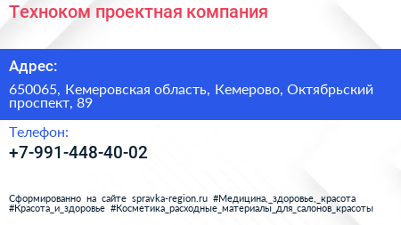 Техноком, проектная компания по адресу 650065, Кемеровская область, Кемерово, Октябрьский проспект, 89 в дальнейшем Организация, размещена в следующих категориях: